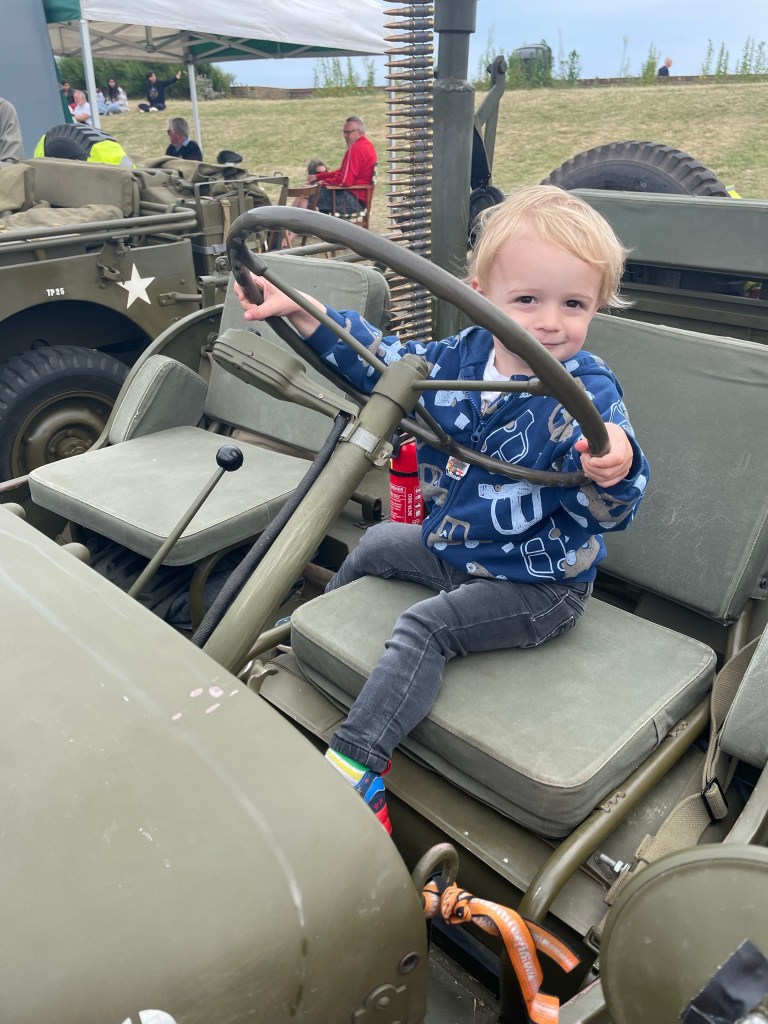 On Saturday we went to the Army day on our local green- first time it had returned in 2 years due to covid. I was so excited to take Thomas as he loved cars – we spend a lot of time watching them at home, particularly Blaze and Ricky Zoom.
